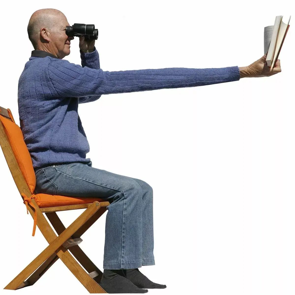 Alderssyn gør det tiltagende svært at fokusere på tekst og objekter tæt på. Det er derfor almindeligt, at mange mennesker over 40 år holder bogen længere væk fra øjnene for at kunne læse det med småt.
